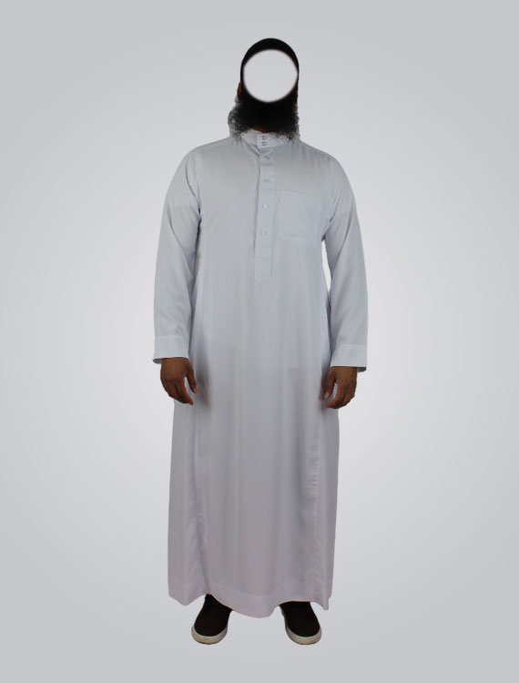 The long sleeve pure color thobe crew stand collar kaftan robe with button is a traditional dress. It features a long, loose-fitting robe with long sleeves, a stand-up collar, and buttons down the front. The pure color design is simple and elegant, and the kaftan style provides comfort and ease of movement. This type of robe is often worn for religious or formal occasions, and it can be paired with traditional headwear and footwear to complete the look. Overall, the thobe is a versatile and practical garment that reflects the cultural heritage and values.