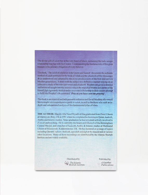 The author has outlined the Salah of a believer taking recourse to the Holy Quran and to the Ahadith of the Prophet Mohammad. He has personally referred to the original works to ensure the correct referencing of the Ahadith cited and their proper contextual usage. The above book is an essential and indispensable reference tool for all Muslims who would like a simple yet comprehensive guide to Salah, as well as for those who seek an in-depth and substantiated analysis of this fundamental pillar of Islam. It is a truly unique and original piece of work.